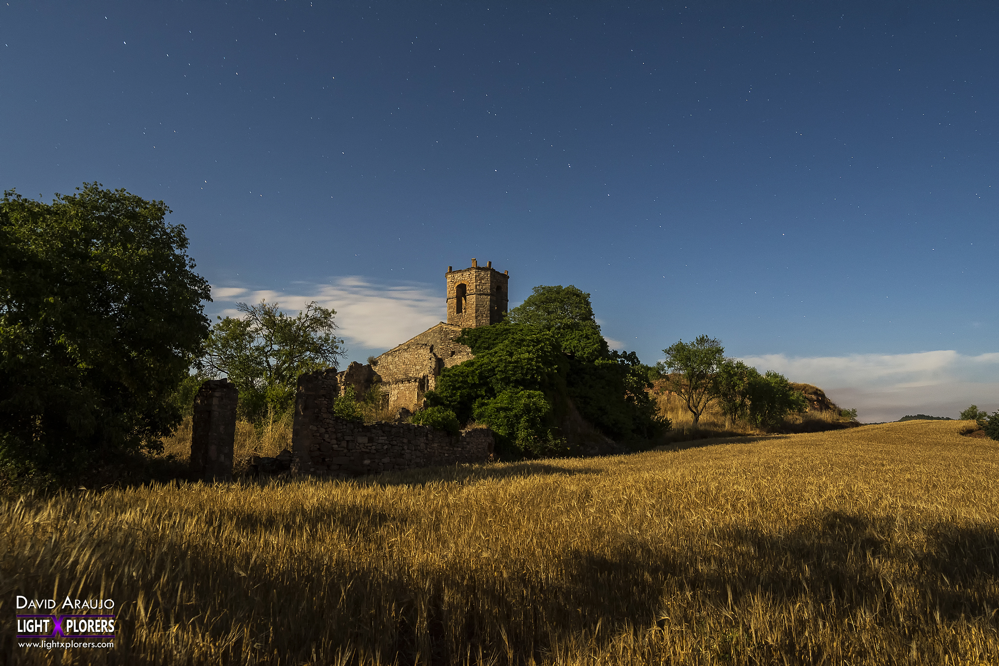 Salida nocturna acompañado por dos componentes de LightXplorers en busca algún paisaje, decidimos ir a un pueblo abandonado y la verdad que estaba bastante en ruinas y olvidado, lo que más en pie estaba era la iglesia y tan sólo tenía este encuadre para mi gusto, así que algo había que sacar….tan solo iluminado por la luna llena.