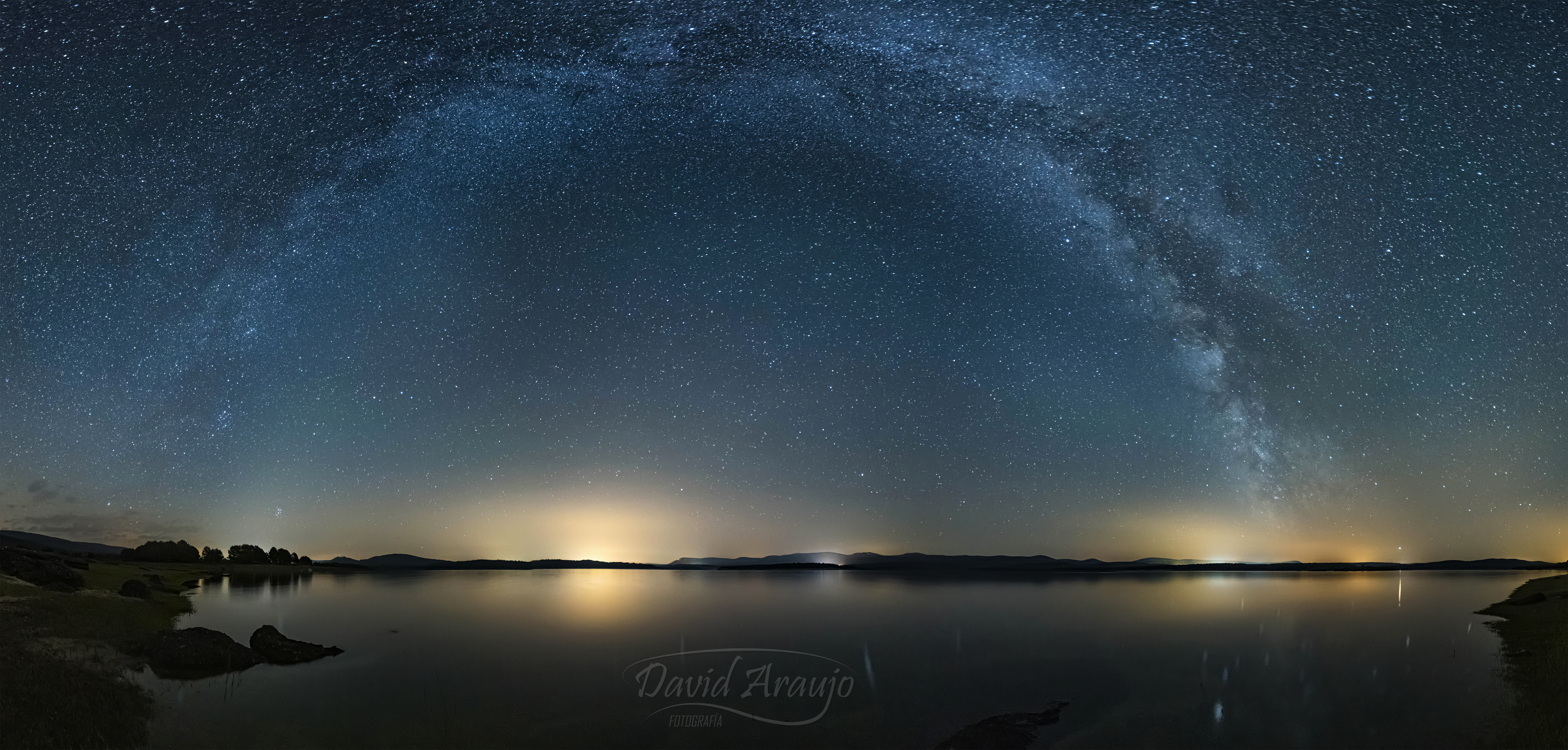 Pano que consta de 24 fotografías en 3 filas (8 fotos por fila) dado que la vía láctea está muy alta, incluso más de 90º en la parte más alta, es muy difícil sacar la parte de arriba sin que se deformen las esquinas superiores, en este caso con mucha delicadeza he tenido que estirar (deformar en photoshop) la pano una vez montada para que se viera el arco lo más redondo posible, en realidad el centro galáctico estaba vertical por completo y en la pano se aprecia perfectamente no lo está, aún así he decido publicar la porque pienso que ha quedado bastante bien…